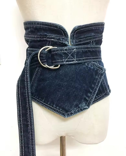 Brand Denim Fabric Women Sim Corset Belts Bandage Bowler Wide Waist Belts Vintage Washed Jean Ladies Dress Belt Cummerbund