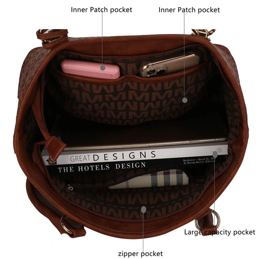 Fashion Handbags and Purses for Women Large Work Tote Bag Top Handle Satchel Shoulder Bag 3Pcs Hobo Purse Set