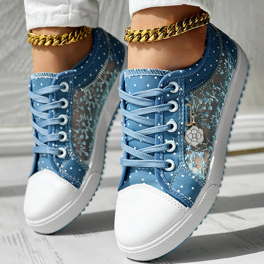 Floral Embroidered Polka Dot Print Sneakers