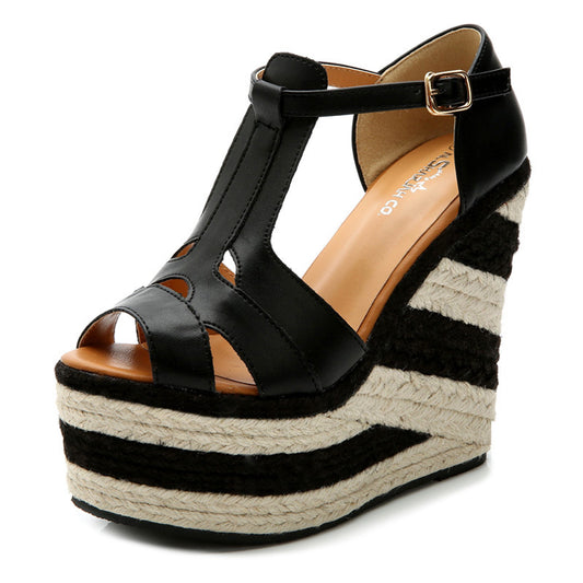 Ethnic Style Contrast Color Thick-Soled Hemp Weave Wedge Sandals