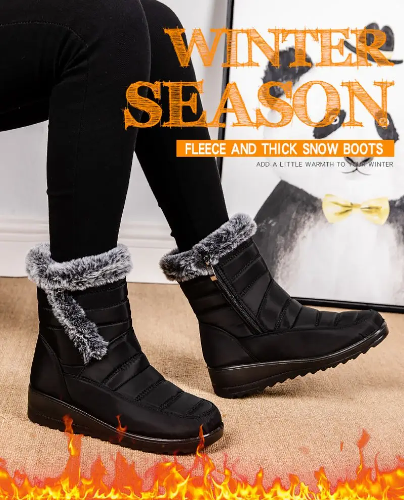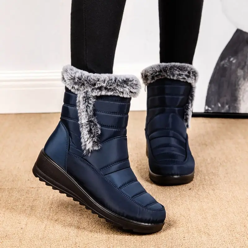 Waterproof Winter Boots for Women 2024 New Thick Plush Snow Boots Woman Platform Ankle Botas Rabbit Fur Warm Cotton Padded Shoes